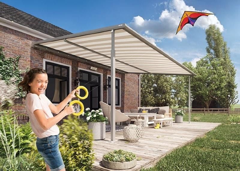 Terrassenspaß bei fast jedem Wetter! Mit der Textil Pergola-Markise Plaza Viva nutzen Sie Ihre Terrasse nun noch ausgiebiger und unbeschwerter – nahezu unabhängig vom Wetter. Ob als Schattenspender an einem sonnigen Tag, als extrem standfesten Wetterschutz bei böigem Wind oder als cleveren Regenschutz bei einem warmen Sommerregen, dank Plaza Viva genießen Sie ohne Unterbrechung die Wohlfühl-Atmosphäre auf Ihrer Terrasse.